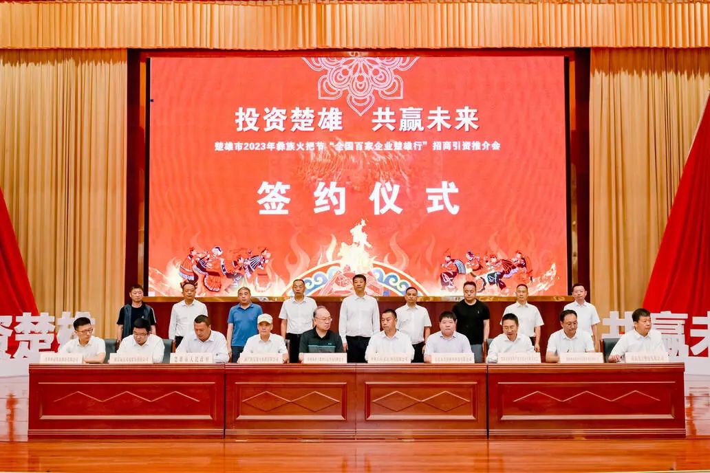 8月11日,“投资楚雄·共赢未来”楚雄市2023年彝族火把节“全国百家企业楚雄行”招商引资推介会举行。本次集中签约项目23个,协议投资总额104.5亿元。