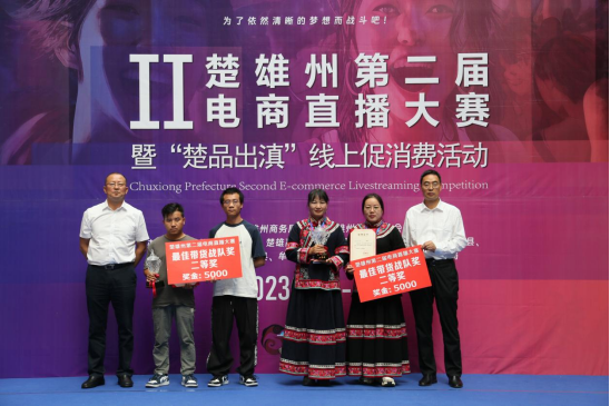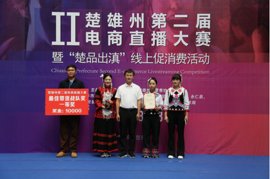 楚雄州商务局唐思虎局长为云味甄选战队颁发最佳带货二等奖