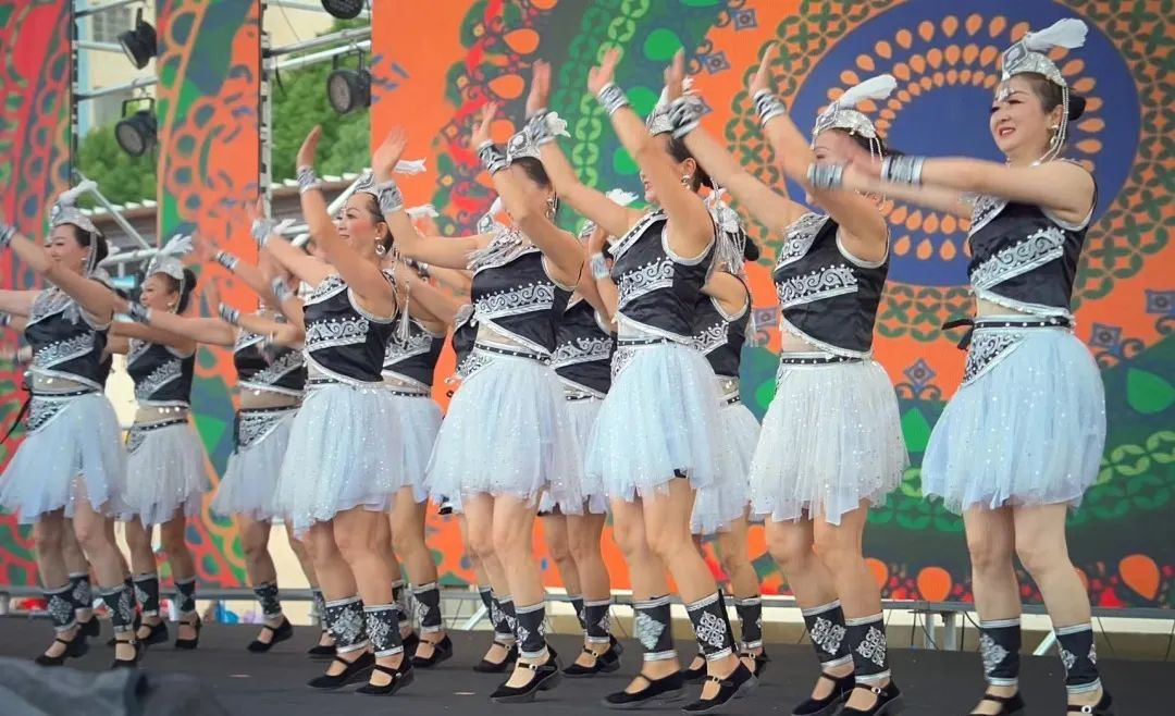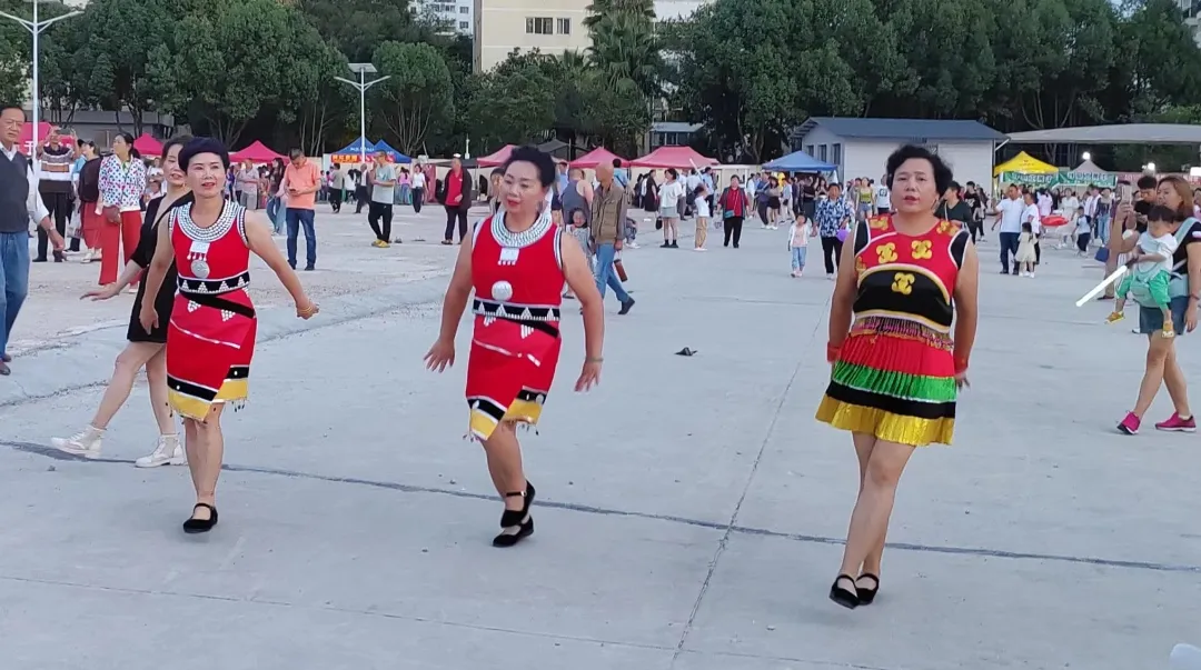 在2023年8月9日官渡区子君社区举办的“城市之光”火把节现场,为庆祝传统民族节日“火把节”,社区群众欢度盛会,共跳传承千年的彝族左脚舞。