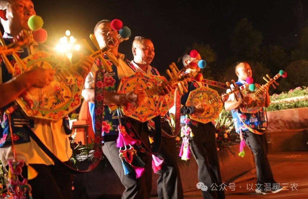 随着音乐的响起,一场场彝族舞蹈盛宴在火光中拉开序幕。“阿细跳月”,舞者们以月为伴,脚踏星辰,动作矫健有力,如同在月宫中翩翩起舞的仙子,每一步都踏出了对生活的无限热爱与向往;“大三弦”的旋律更是激昂澎湃,乐手们手指翻飞间,音符跳跃成河,与舞者的身姿交织成一幅幅生动的画卷,展现了彝族人民乐观向上、勇往直前的精神风貌。