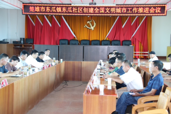 近日,楚雄市东瓜镇东瓜社区召开创建全国文明城市工作推进会,市委常委、常务副市长王连波,楚雄经开区(高新区)党委委员、东瓜镇党委书记杨志敏到会指导,16家中央、省、州属结对共建单位负责人和东瓜镇有关领导、东瓜社区“两委”班子、辖区21家商住小区物业公司负责人、14个居民小组干部参加了会议。