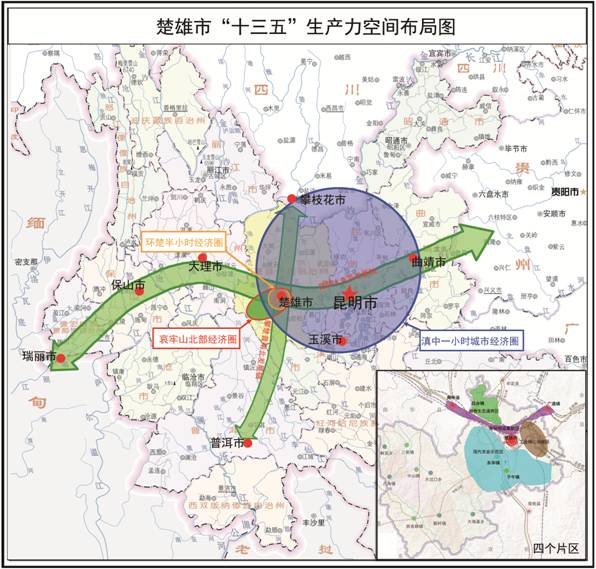 一、融入滇中一小时城市经济圈。以滇中城市经济圈为核心,发挥区位和资源优势,加强五大基础网络和产业转移融合,积极融入滇中城市经济圈一体化发展,构建分工协作、优势互补、差异竞争、合作共赢的发展格局。