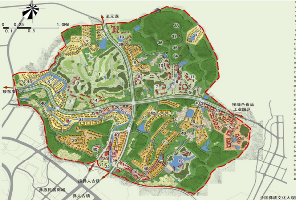 北片区(开发区)规划 控制总面积为123平方公里,东至东瓜大沟,西至紫溪山脚,南至320国道,北至钱粮桥。片区总体规划包括彝族文化大观园、世界和平博览园、西片区提升改造三大片区,其中彝族文化大观园15平方公里,世界和平博览园73平方公里,西片区提升改造35平方公里。功能和定位为集生态观光、民居建筑、民族风情、民族体育、民族宗 教为一体的康体娱乐项目区和中国彝寨展示区。 |