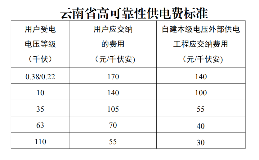 根据《云南省发展和改革委员会关于进一步明确高可靠性供电费有关事项的通知》(云发改价格〔2021〕141号)要求,通过互联网服务渠道及营业场所对外公示“云南省高可靠性供电费标准”。
