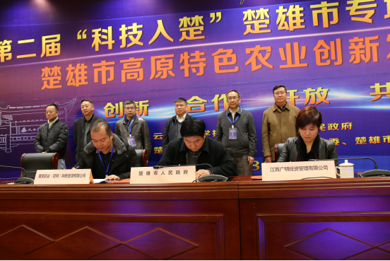 市委常委、常务副市长邹顺伟代表市人民政府与昆明理工大学、江西广明集团等单位和企业签订合作协议。市人民政府副市长唐陶代表市人民政府作项目推介,共签订合作协议7项,签约资金达21.2亿元。并主持楚雄市高原特色农业创新发展论坛。昆明理工大学生命科学与技术学院副院长林连兵、西南科技大学生命科学与工程学院教授、硕士生导师贺新生、昆明理工大学教授徐天瑞分别作高原特色农业发展创新主旨演讲。