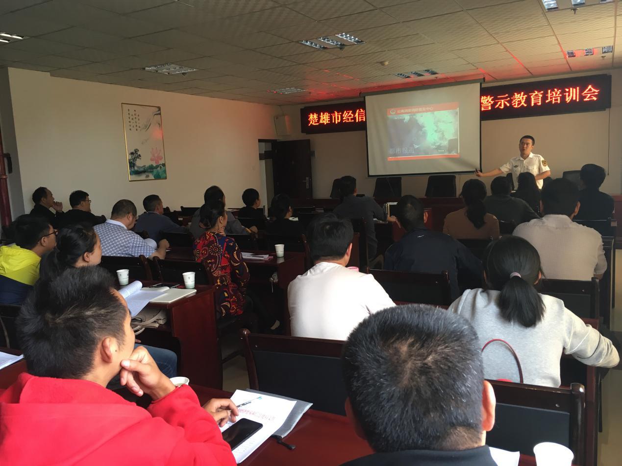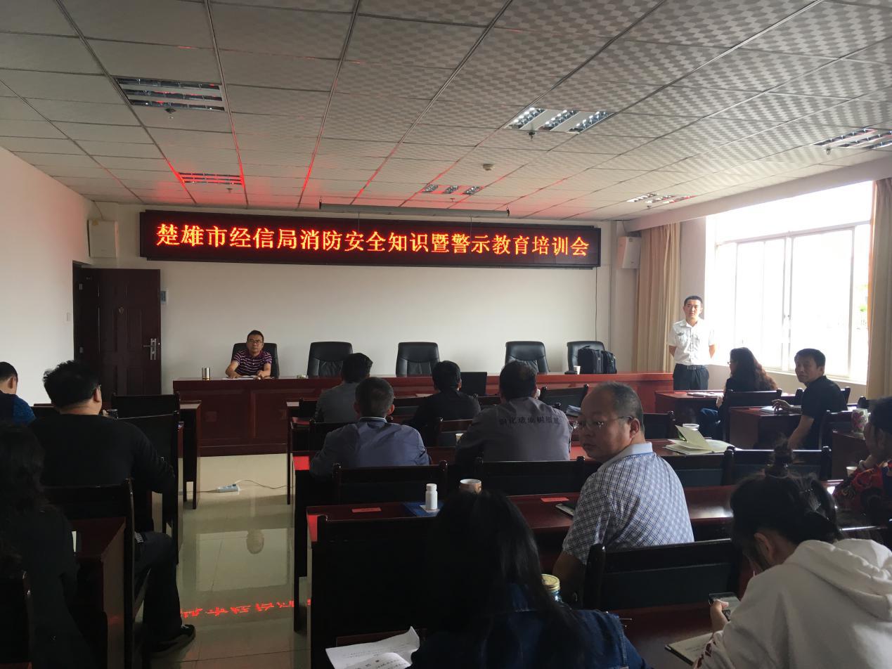 2018年6月11日,楚雄市经信局召开辖区内煤矿企业、市本级规以上工业、限额以上商贸企业(园区企业、大型商场、加油站)负责人参加的消防知识培训及警示教育安全工作会议,会议由楚雄市经信局副局长金向光主持,由云南省消防中心老师进行消防知识培训及观看了消防警示片。金向光副局长做了培训前动员并提出要求。一是各企业要强化安全生产红线意识,加强职工培训、教育、宣传力度;二是认真落实企业安全生产主体责任,加大安全投入,建立健全安全台账;三是强化监管,按照消防安全生产专项检查要求,认真开展企业自检自查、隐患排查整改力度;四是深刻吸取火灾事故教训,举一反三,查找不足,结合企业实际开展安全检查,做好值班值守工作,确保企业安全、健康平稳发展。