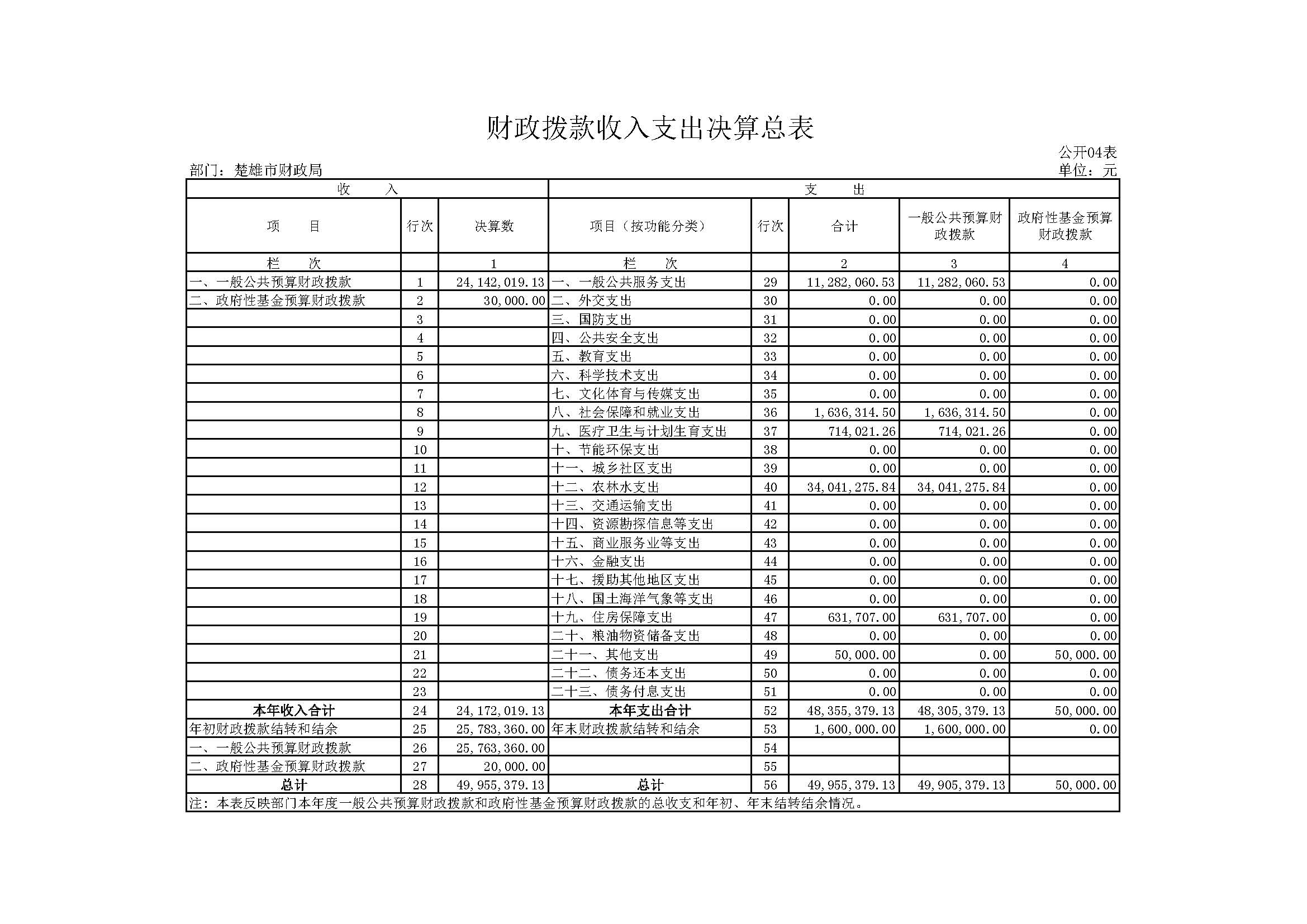 2.编制全市和市本级年度财政预算草案,执行楚雄市人民代表大会批准的财政预算,依法管理财政收支;编制全市和市本级年度财政决算;受楚雄市人民政府委托,向楚雄市人民代表大会进行报告全市和市本级财政预算及其执行情况和年度财政决算;编制市本级部门预算;制定需要全市统一规定的经费支出政策和开支标准;负责审核批复市级预算单位的年度预决算;办理中央、省、州对楚雄市的转移支付,制定和执行地方财政转移支付方案。