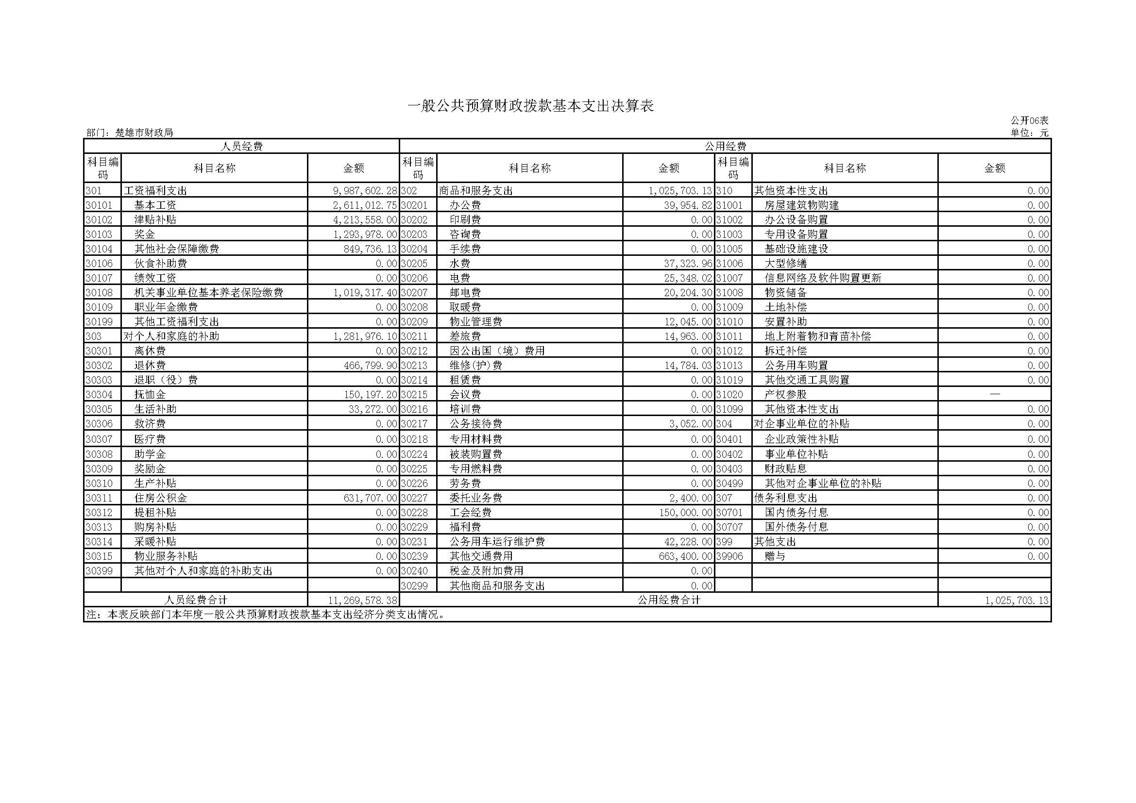 人员情况:楚雄市财政局2017年末财政供养人员91人(其中:在职职工67人,退休职工24人),遗属补助人员2人。