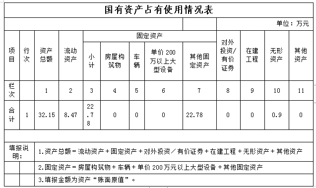 截至2021年12月31日,中国共产主义青年团楚雄市委员会部门资产总额32.15万元,其中,流动资产8.47万元,固定资产22.78万元,对外投资及有价证券0元,在建工程0万元,无形资产0.9万元,其他资产0万元(具体内容详见附表)。与上年相比,本年资产总额减少7.36万元,其中固定资产总额未发生变动,固定资产本年折旧2.33万元,累计折旧17.35万元,固定资产净值7.76万元。处置房屋建筑物0平方米,账面原值0万元;处置车辆0辆,账面原值0万元;报废报损资产0项,账面原值0万元,实现资产处置收入0万元;出租房屋0平方米,账面原值0万元,实现资产使用收入0万元。