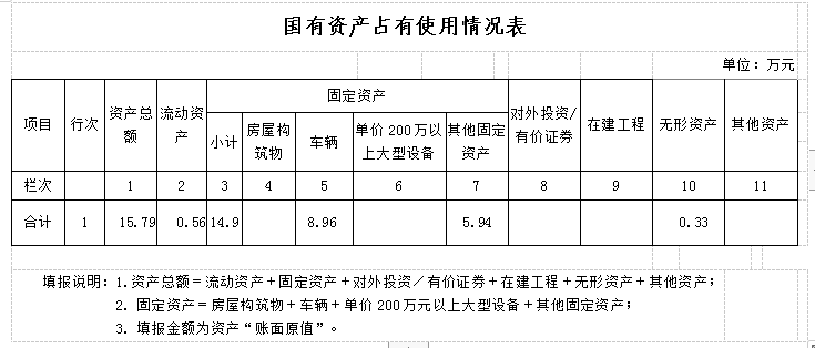 截至2021年12月31日,楚雄市科学技术协会资产总额15.79万元,其中,流动资产0.56万元,固定资产14.9万元,对外投资及有价证券0万元,在建工程0万元,无形资产0.33万元,其他资产0万元(具体内容详见附表)。与上年27.53万元对比,本年资产总额减少11.74万元,其中流动资产减少6.41万元,固定资产减少5.15万元,无形资产减少0.18万元。处置房屋建筑物0平方米,账面原值0万元;处置车辆0辆,账面原值0万元;报废报损资产0项,账面原值0万元,实现资产处置收入0万元;出租房屋0平方米,账面原值0万元,实现资产使用收入0万元。