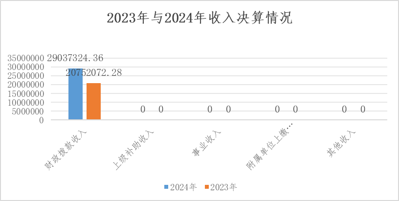 与上年相比,收入合计增加8285252.08元,增长39.92%。其中:财政拨款收入增加8285252.08元,增长39.92%;无上级补助收入增加;无事业收入增加;无经营收入增加;无附属单位上缴收入增加;无其他收入增加。主要原因是2024年有效履行单位核心职能,人员经费和公用经费随政策标准调整而合理增加;2024年有新招录人员,人员经费、公用经费增加;根据上级工作部署和本单位事业发展需要,积极向上争取项目,为保障各项重点工作的顺利推进和既定目标的实现,财政拨款收入增加。