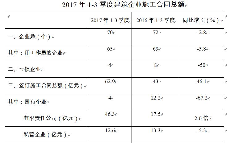 从截止至三季度建筑企业签订的施工合同总额来看,到四季度末,按80%的工程进度测算,预计全市全年建筑业总产值仍有13.5亿元的增量,全年建筑业总产值总量应保持在50.3亿元水平,四季度总产值增速预计会回落至27%-40%之间。