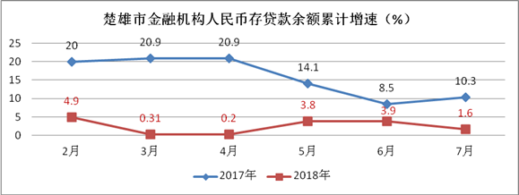 2.金融机构人民币存贷款余额完成837.9亿元,增长1.6%,增速较去年同期(10.6%)回落9个百分点,较1至6月(3.9%)回落2.3个百分点。