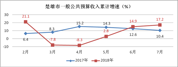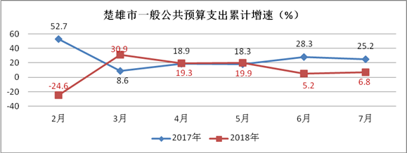 8.一般公共预算支出完成32.96亿元,增长6.8%,增速较去年同期(25.2%)回落18.4个百分点,较1至6月(5.2%)提高1.6个百分点。