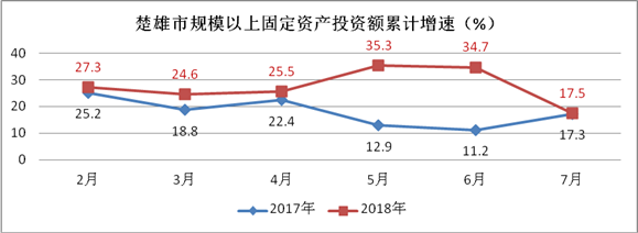 3.规模以上固定资产投资增长17.5%,增速较去年同期(17.3%)提高0.2个百分点,较1至6月(34.7%)回落17.2个百分点。