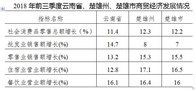 (一)消费市场总体平稳。今年以来,全市消费市场发展变化趋势与国家、省、州基本保持一致,总体运行平稳。前三季度完成社会消费品零售总额113.77亿元,同比增长12.2%,增速分别高于全国(9.3%)、全省(11.4 %)2.9、0.8个百分点,低于全州(12.3%)0.1个百分点,在全州10县市中与永仁并列排名第8位。其中:实现限上零售额50.69亿元,同比增长15.2%,限上占比44.6%,在全州10县市中排名第2位。