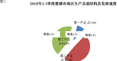 前三季度,楚雄市实现地区生产总值268.94亿元,增长8.1%,较上半年回升2.1个百分点;增速低于全省1个百分点全州0.9百分点,增速排全省77位、全州7位。从地区上看,在滇中县域经济活动圈中(主要指滇中10县、市、区),经济总量楚雄市排9位,增速排5位。从结构上看,三次产业占比由2017年的7.4:51.5:41.1调整为7.9:48.9:43.2,一、三产业占GDP比重上升,二产业占GDP比重下降。从增速上看,二产业增速分别快于三产业和一产业3.4和3.6个百分点。