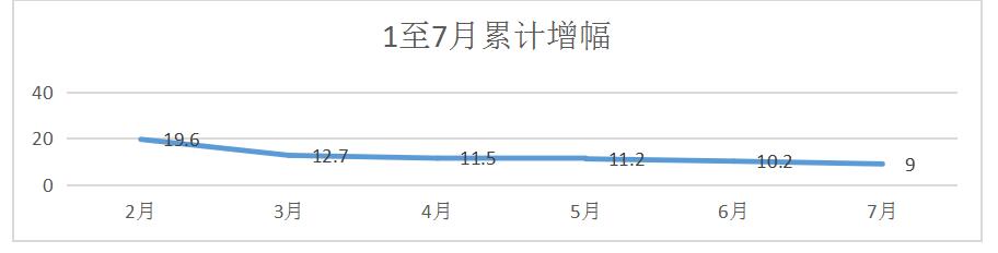一是规上工业增加值1至2月增长19.6%、1至3月增长12.7%、1至4月增长11.5%、1至5月增长11.2%、1至6月增长10.2%,1至7月增长9%,增幅逐月走低。下半年随着同期基数不断增大,增速回落将更明显。二是烟草制品业增速回落较快。卷烟按照国家计划生产,随着生产销售指标逐年缩减,增幅呈现高开低走态势。而烟草制品业占全市工业比重高,增速回落对工业增长影响较大。