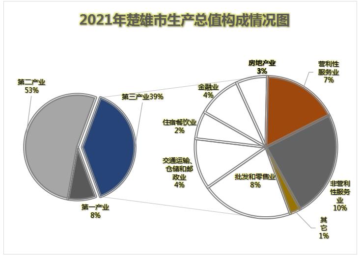 从产业占比看,一、二、三产占GDP的比重分别为8.5%、52.7%、38.8%。与2020年相比,第一、二产业比重持续提高,第三产业比重再次下降。