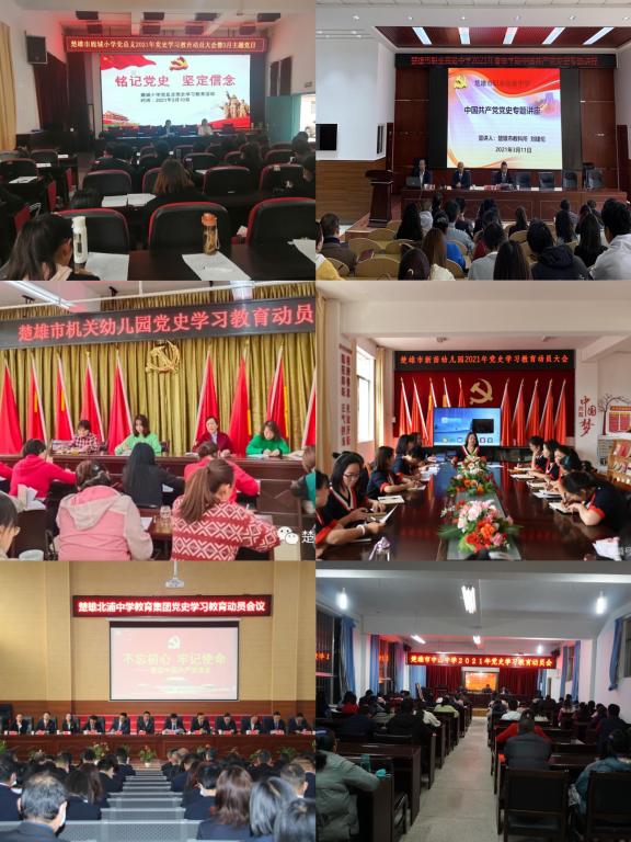 楚雄市教育体育系统各学校、各单位行动迅速,主动作为,营造浓厚学习氛围,做到学习教育党员全覆盖,职工全参与,学生都知晓,做到进校园、进班级、进课堂,努力用党的光荣传统和优良作风坚定信念、凝聚力量,在全系统掀起党史学习教育新高潮。