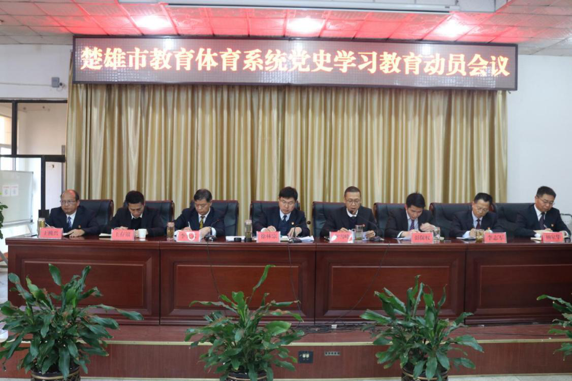 2021年3月8日上午,楚雄市教育体育系统召开党史学习教育动员会议。传达学习习近平总书记在党史学习教育动员大会上的重要讲话精神和省委、州委、市委相关会议精神,全面落实中央部署和省州市要求,统一思想,明确任务,对教育体育系统开展党史学习教育进行动员部署。会议指出,要把握目标要求,聚焦重点任务,高质量高标准推进党史学习教育,切实把学习教育成果转化为准确把握新发展阶段、深入贯彻新发展理念、加快构建新发展格局的强大动力和实际成效。