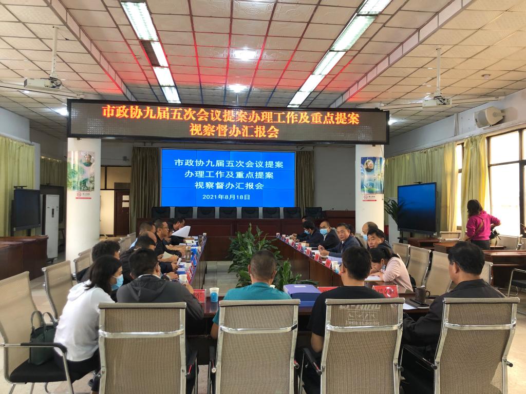 2021年8月18日上午,根据《政协楚雄市第九届委员会常务委员会2021年工作要点和协商计划的通知》安排,为进一步推进市政协九届五次会议提案的办理落实,在市政协党组书记、主席马子才的带领下楚雄市政协视察团一行9人,到市教育体育局开展市政协九届五次会议提案办理及重点督办提案落实情况视察及督办。视察团在市委教育工委副书记、市教育体育局副局长李雪峰及体育科科长巴立新、建设管理科科长陈晓东、教育科科长杨庆昆、办公室副主任普阳等人陪同下,实地查看了北浦中学鹿城分校、楚雄市老年体育协会、彝海幼儿园建设实施情况及楚雄市斑马沃嘉教育培训学校监管情况,随后在市教育体育局六楼会议室查阅资料并召开汇报会。