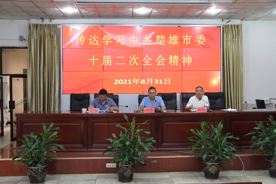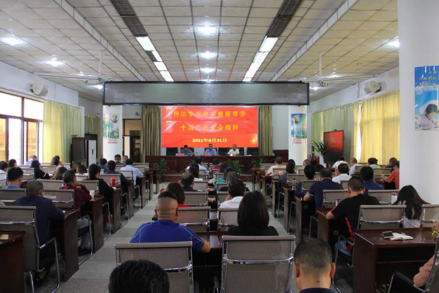 2021年8月31日上午8:30,楚雄市教育体育局机关干部职工会议在六楼会议室举行。市委教育工委副书记,市教育体育局党组成员、副局长李雪峰同志在会议上传达学习了市委十届二次全会会议精神。