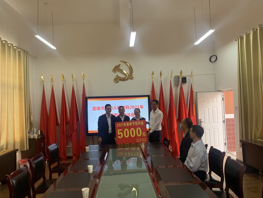座谈会最后,吴主任一行向学校送上了慰问金,并向全体教师送上节日的祝福和问候!