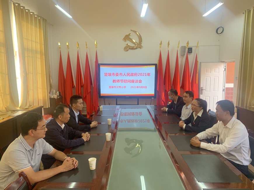 金秋沃野,丹桂飘香,伴随着丰收的喜悦,9月8日上午,在第37个教师节即将来临之际,楚雄市人大常委会主任吴永祥、市人大常委会办公室主任李波一行在市教育体育局副局长王存银陪同下莅临楚雄市灵秀小学开展教师节走访慰问活动,灵秀小学全体教师深深感受到来自市委、市政府领导的关怀,更加坚定了克服一切困难办好教育的信心。