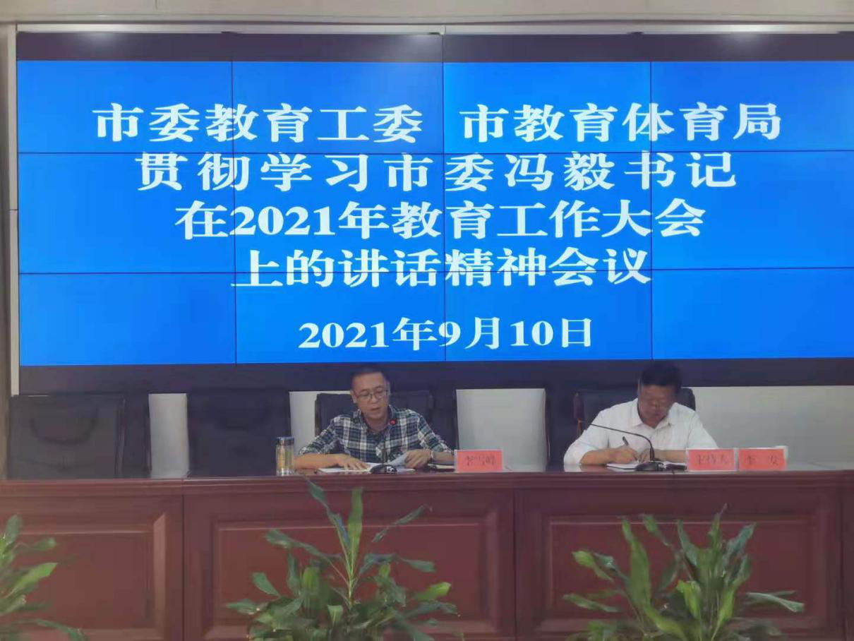 会议由市委教育工委办公室副主任李发主持。市教育体育局班子成员,市教育体育局机关和所属事业单位全体工作人员参加。