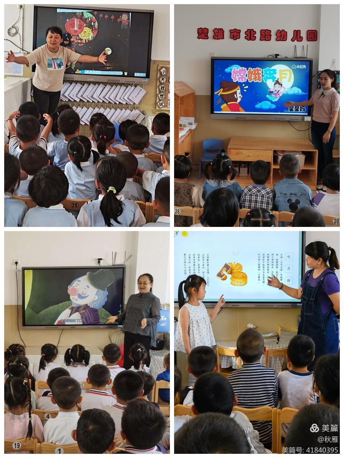 孩子们在老师的引导下认识中秋文化,通过《嫦娥奔月》、《玉兔捣药》、《后羿射日》等传说故事,图文并茂地让孩子们知晓了中秋节的由来和习俗。