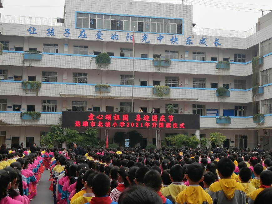金秋十月鲜花艳,朝阳照耀笑开颜,举国欢庆,万众沸腾,祖国迎来第72个生日,楚雄市北城小学的校园也弥漫着欢庆的节日氛围。9月30日上午8:30全校师生隆重聚会,举行壮观、盛大的升国旗仪式,祝福祖国生日的到来,也为纪念全国第八个烈士纪念日,向所有先烈致敬!