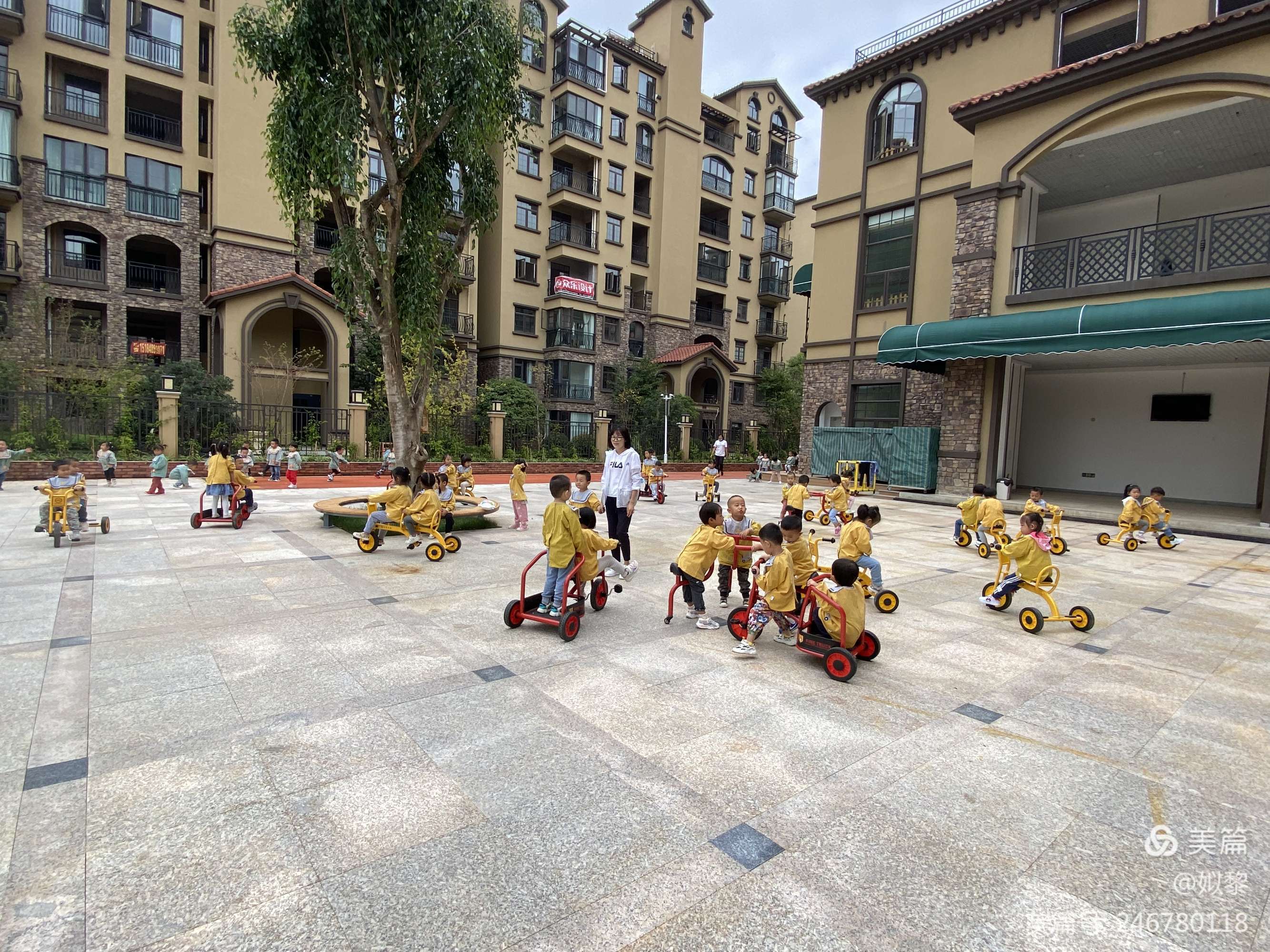 户外活动开始了,和小朋友们一起骑上我心爱的小车,别提多有趣了!
