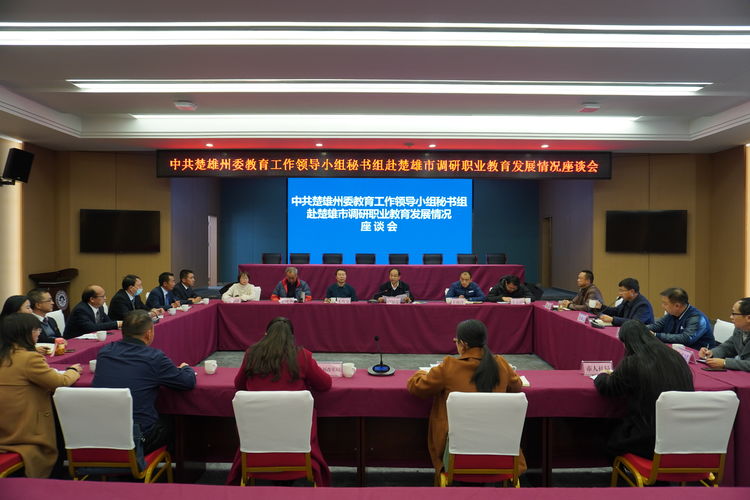 中共楚雄州委教育工作小组秘书组赴楚雄市调研职业教育发展情况座谈会在楚雄市职业高级中学三楼报告厅召开。