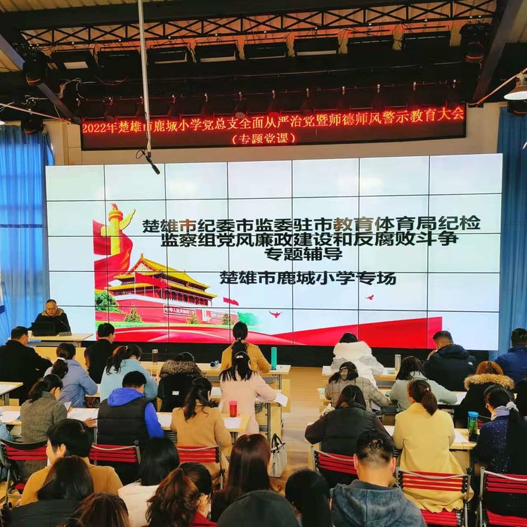 学高为师,身正为范;教师不仅是先进文化的传播者,更是思想道德建设的传播者;师德水平的高低,关系到国家的前途和民族的兴衰。结合开学前全体教职工大会的契机。我校很荣幸邀请到市纪委监委派驻市教育体育局纪检组组长鲁正学同志和楚雄市人民检察院第四检察部主任、鹿城小学法制副校长黎江荣检察官,于2022年2月27日上午在鹿城小学文庙校区六楼报告厅给全体教职工作专题宣讲。会议由鹿城小学党总支书记程瑞同志主持,会议共三项议程: