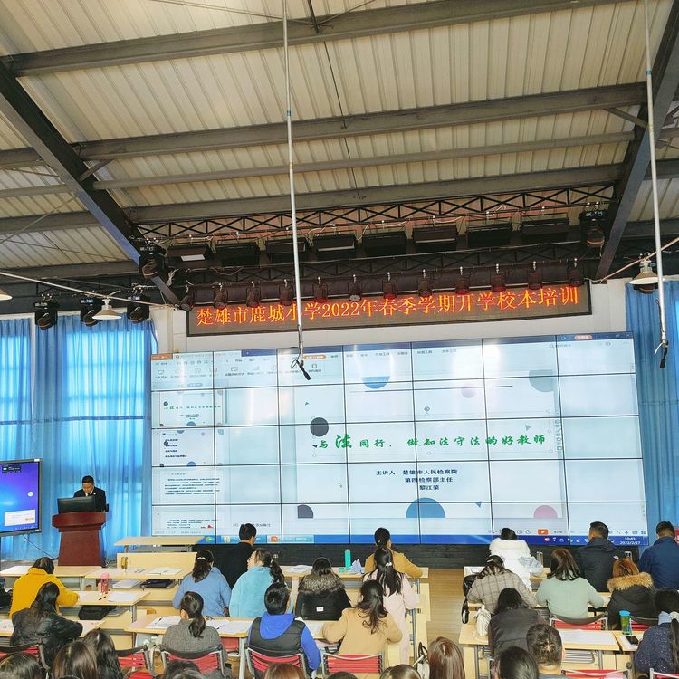 第二项议程:楚雄市人民检察院第四检察部主任、鹿城小学法制副校长黎江荣检察官以《与法同行、做知法、守法的好老师》为主题,进行专题辅导。黎江荣检察官从什么是法治、法制与法治的区别和联系、法治与德治、罪名浅析与案例警示几方面进行阐述;着重介绍了危险驾驶罪、交通肇事罪、诈骗罪、袭警罪、赌博罪等。告知大家要遵规守纪、以身作则、洁身自好;依法治国和依法执教相结合,做一名与法同行、做知法、守法的好老师!