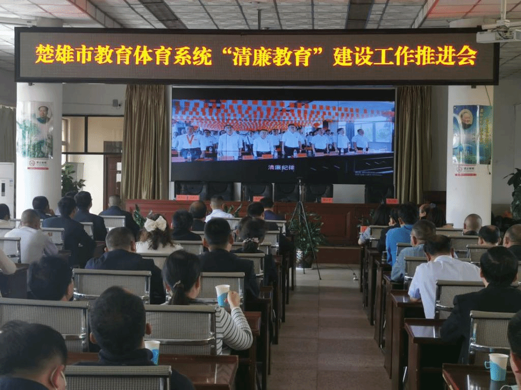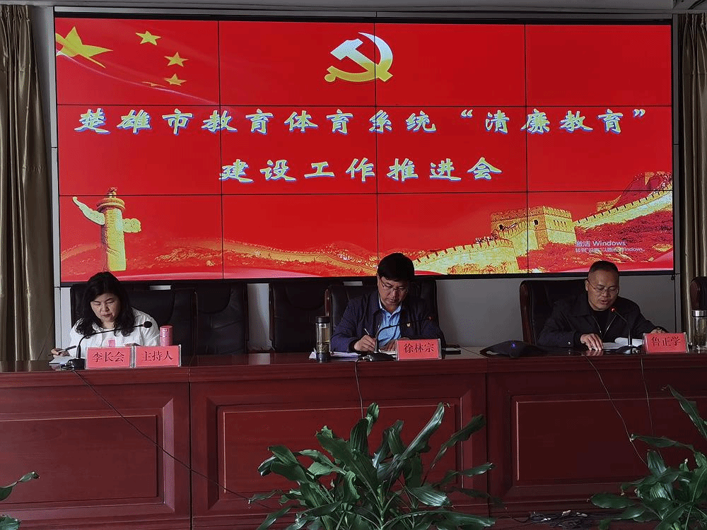 徐林宗强调,深入推进“清廉教育”建设,实施“清廉学校”、“清廉机关”建设行动,是推动全面从严治党向纵深发展、营造风清气正政治生态的有力抓手,是推动全市教育体育高质量发展的重要保障。全系统各级党组织和广大党员干部教职工要把思想和行动统一到党中央决策部署和省州市党委和纪委监委工作安排上来,围绕市委建设政治生态山清水秀、政府系统阳光清廉、党员干部清正勤勉、社会风气清朗向上的“清廉楚雄”目标,努力打造清明政风、清净校风、清正教风、清新学风的“清廉学校”,推动全面从严治党向纵深发展、向基层延伸、向群众身边延伸。