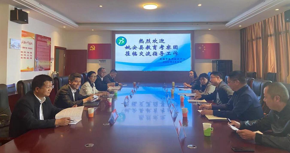 2022年4月11日,姚安县人民政府副县长马丽、姚安县教育体育局局长罗成功、副局长胡荣华、姚安县教育体育局办公室主任林晓山、教研室主任徐启海等一行7人到访楚雄市教师培训中心,进行参观考察和学习交流。楚雄市人民政府副市长李智才、楚雄市教育体育局局长徐林宗、副局长李长会、教师培训中心主任杨家华、副书记胡萍、教师进修学校校长丁忠云、教科所所长杨阳、装备站站长杨崇伟参与交流活动并对姚安县教育考察团一行表示热烈欢迎。