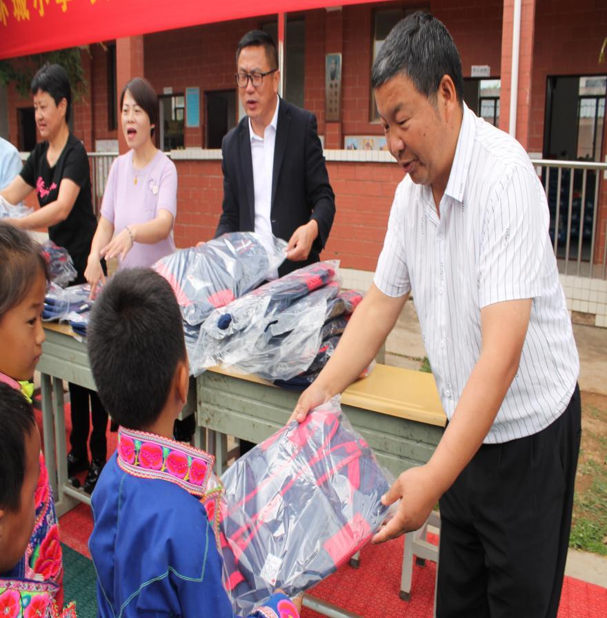 随后,在学校球场,举行了“手拉手·献爱心”活动仪式。活动仪式上,周校长、李校长分别做了讲话,话语间充满了对每一个孩子的深切关爱和殷殷希望。接着周校长及随行的4位老师为孩子们发放了爱心书包及助学金,孩子们手捧书包及助学金,脸上洋溢着笑容,那一张张活泼可爱的笑脸表达着对周校长们的感谢及欢迎。