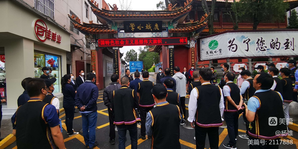 在点位讲解员的引领下,州级初验工作领导小组、第三方评估组、互观互检组及楚雄市陪同领导一行参观了文庙尊经阁、泮池、大成殿等具有浓厚儒家文化的校园环境,进一步了解了鹿城小学悠久的办学历史。