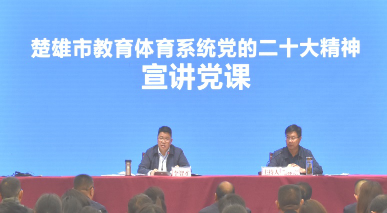 2022年11月12日,楚雄市人民政府副市长李智才到市教育体育系统讲授专题党课。会议由市委教育工委书记、市教育体育局党组书记、局长徐林宗同志主持。
