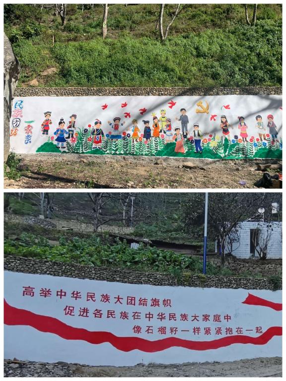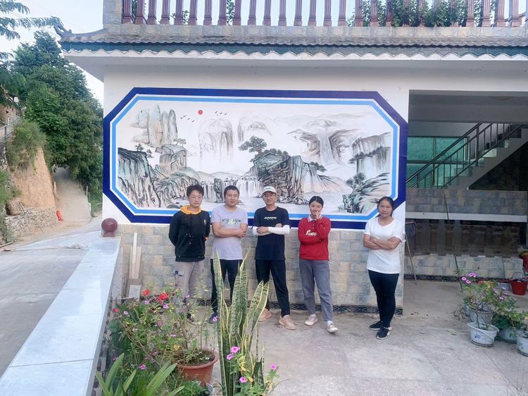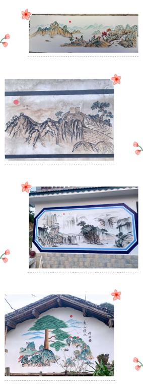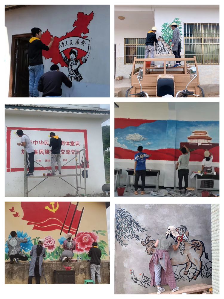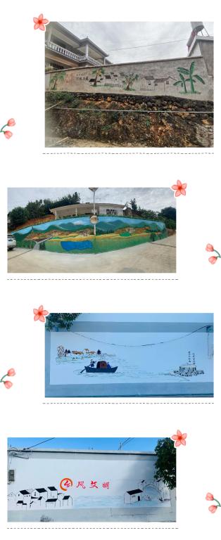 教师们顶着炎炎烈日,不辞辛劳,奔赴各个村委会,丈量墙面、粉刷底色、寻找样图、制定主题。每天,每位教师紧急处理安排好学校的教学工作后,便匆匆忙忙的奔赴下乡,经过多日的努力,总共517平方米的墙绘呈现在大家眼前。一幅幅山水兰韵、祖国壮美河山、优美的田园风貌、以党建引领为依托等主题画面跃然于墙上,村民们纷纷树立起大拇指。达诺村委会书记感慨的说道:多亏了这些老师不辞辛苦,尽心竭力帮助我们打造优美村容村貌,让村民们感受到村子的变化和美。