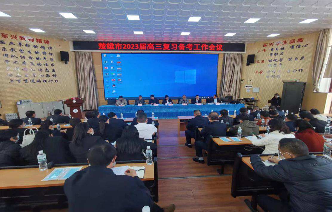 3月6日,楚雄市高中教育提质增效工作专班在东兴中学召开2023届高三复习备考工作会议。专班全体成员,市教育体育局领导班子全体成员,市教科所中学室教研员,市属各高完中校领导、高三年级组相关人员参加此次会议。市委教育工委李志军委员主持会议。