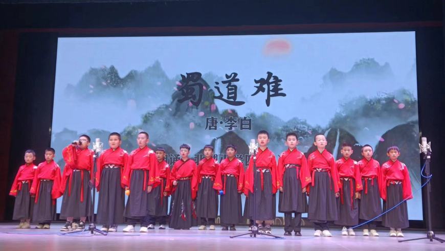 男孩们用他们青涩稚嫩却不失雄浑豪迈的声音,再现了李白诗中蜀道的峥嵘、突兀、崎岖、惊险和不可凌越的磅礴气势。“蜀道之难,难于上青天”不仅是一副色彩绚丽的山水画卷,也是李白浪漫豪爽的非凡之作,更是现代人生活学习的一种勇气和情怀。两个节目吸睛无数,赢得阵阵掌声。