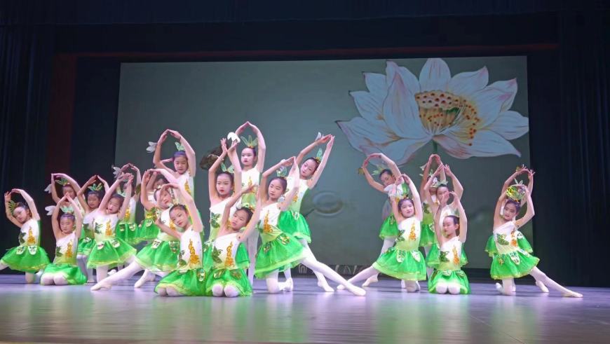女孩们用舞蹈《清荷颂》把北城小学的莲韵文化无声地传达给在场的所有观众。柔美高雅的舞姿,清新脱俗的妆容,将荷花“出淤泥而不染,濯清涟而不妖”的正直高洁演绎到极致。