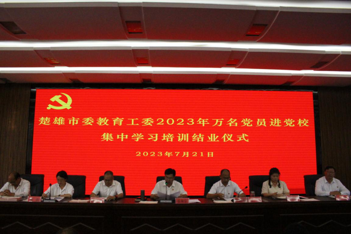7月18日至21日,在市委组织部的指导、市委党校的支持下,楚雄市委教育工委成功举办2023年万名党员进党校集中学习培训班。主要任务是:深入学习贯彻习近平新时代中国特色社会主义思想和党的二十大精神,全面推进学校党组织建设,加强党员教育管理,全面提升广大党员干部的政治素质和能力水平,提高党员队伍建设质量,保持党员的先进性和纯洁性,持续强化党员思想理论武装,以“党建引领”为教育体育事业“聚势赋能”。市委副书记、市人民政府市长罗兴贵出席开班仪式,并作楚雄市教育形势专题培训。