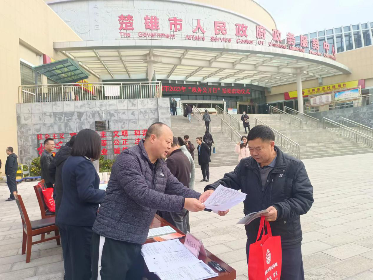 为深入贯彻落实党的二十大精神及国务院办公厅、省、州政府关于推进新时代政务公开工作的决策部署,提升公众通过政务公开渠道了解政府、监督政府的意识,充分发挥政务公开助推法治政府、廉洁政府、服务政府、高效政府建设的积极作用,根据《楚雄州人民政府办公室关于印发2023年度政务公开与政务服务指标考评细则的通知》要求,11月24日上午,楚雄市2023年“政务公开日”活动在楚雄市政务服务中心广场正式启动。