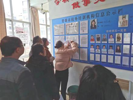 1月24日至26日,为认真贯彻落实教育部办公厅《关于做好2024年寒假期间校外培训治理有关工作的通知》《云南省2024年寒假期间校外培训治理工作方案》文件精神,持续深入开展校外培训专项治理,规范校外培训办学行为,维护校外培训市场秩序,按照州教育体育局统一部署要求,我市紧盯“寒假”窗口期,提前谋划、周密部署制定了《楚雄市2024年寒假期间校外培训治理工作方案》,由市教育体育局牵头联合网信、科技、公安、文化和旅游、市场监管、住建、民政、人社、消防救援九部门,成立五个综合整治工作组,分区域对全市城区校外培训机构进行集中检查治理。