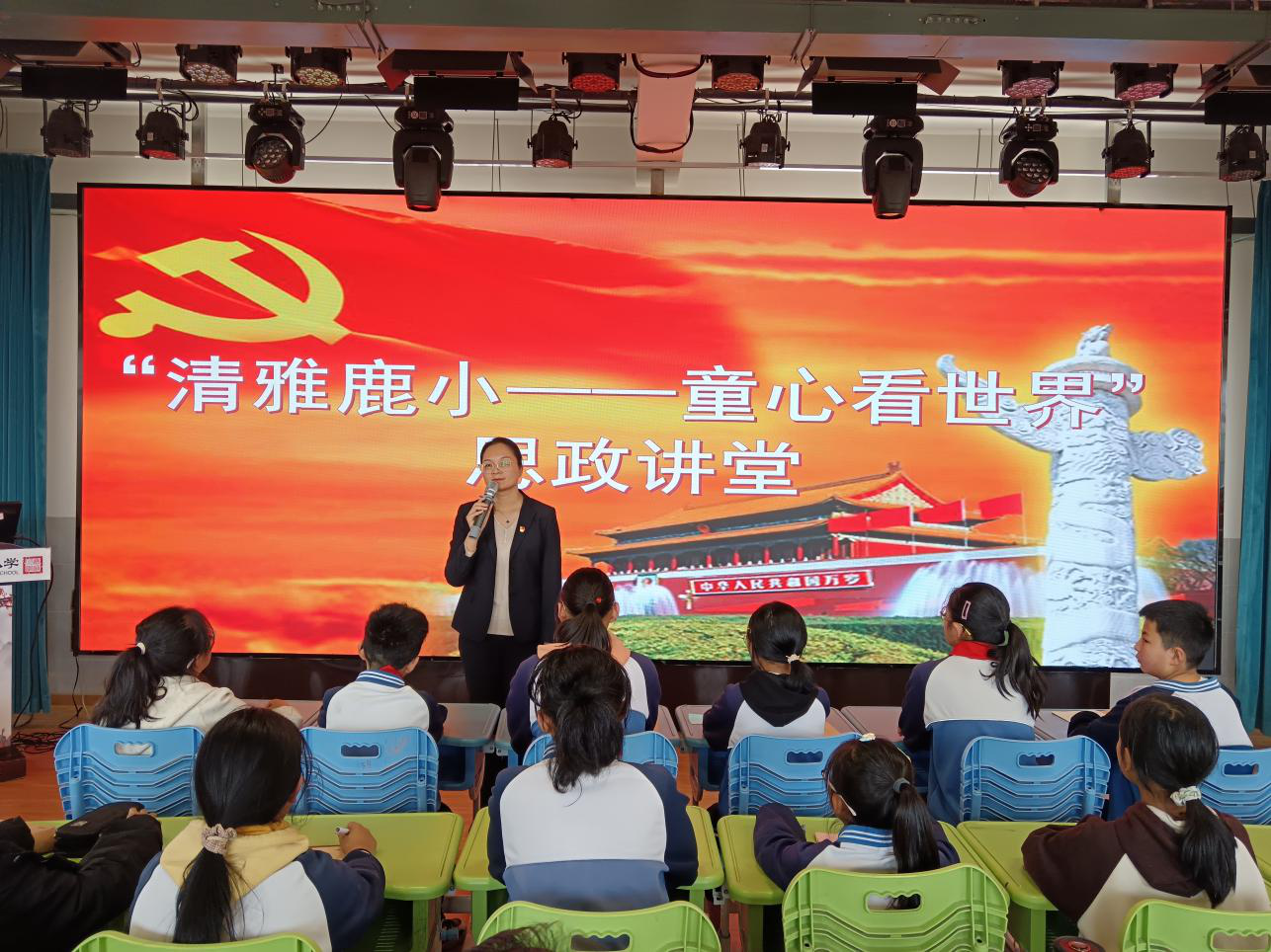 经过精心策划,第一期“清雅鹿小——童心看世界”思政讲堂在小花山校区拉开了帷幕。鹿城小学党委书记程瑞、副书记王跃明、小花山校区党支部书记杨佳兰及六年级的全体师生参与了本次活动。