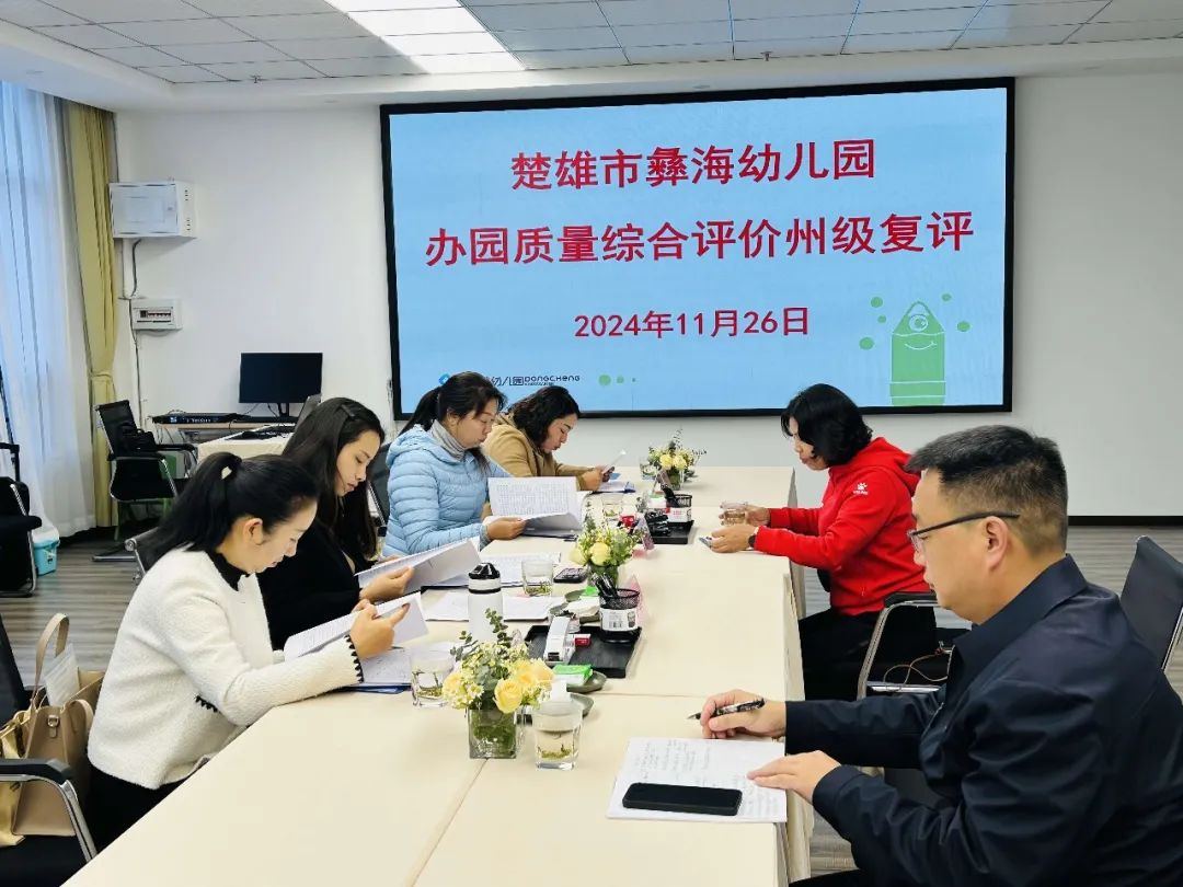 根据《楚雄州教育体育局关于楚雄博源幼儿园等15所幼儿园开展办园质量综合评价州级复评的通知》,11月26日,在楚雄市教育体育局督导科李学军科长、顾华斌老师的陪同下,由州政府督学、楚雄州幼儿园李红运副园长,州政府督学、大姚县幼儿园龚慧娟园长,武定县幼儿园李佳艳园长,武定县幼儿园张晓林副园长一行4人组成的专家组对彝海幼儿园开展了幼儿园办园质量综合评价州级复评。
